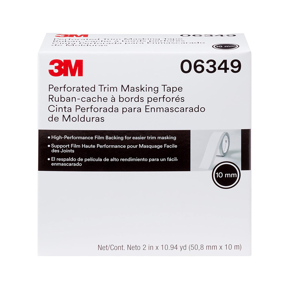 The 3M™ Trim Masking Tape 06349 is a specialized automotive masking solution designed to facilitate efficient and precise painting around vehicle moldings. This tape features a 10 mm hard band along its edge, allowing it to slip easily between trim moldings and auto body surfaces, lifting the moldings slightly to enable paint to flow beneath while masking their exteriors.