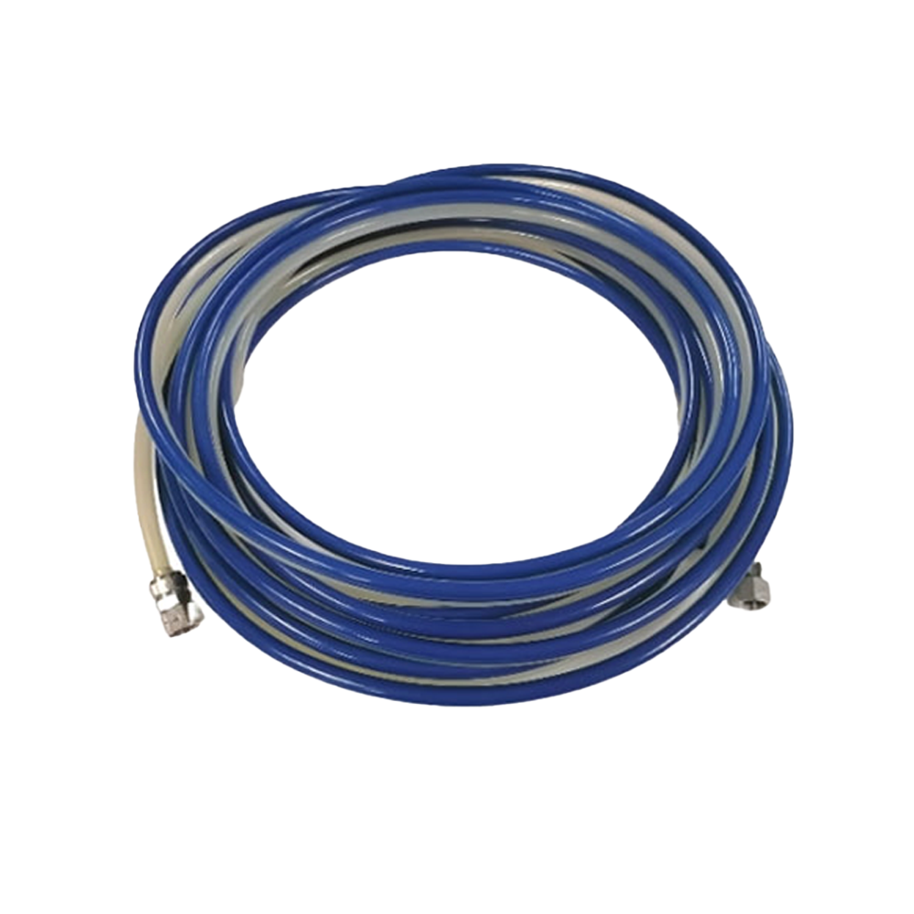 Durable and reliable air and fluid delivery hose designed for spray painting applications. This twin hose system comes with integrated earthing to ensure safety by preventing static buildup, which is crucial when working with flammable or sensitive materials. The 15-meter length provides extended reach, making it ideal for professional settings where mobility and flexibility are essential.