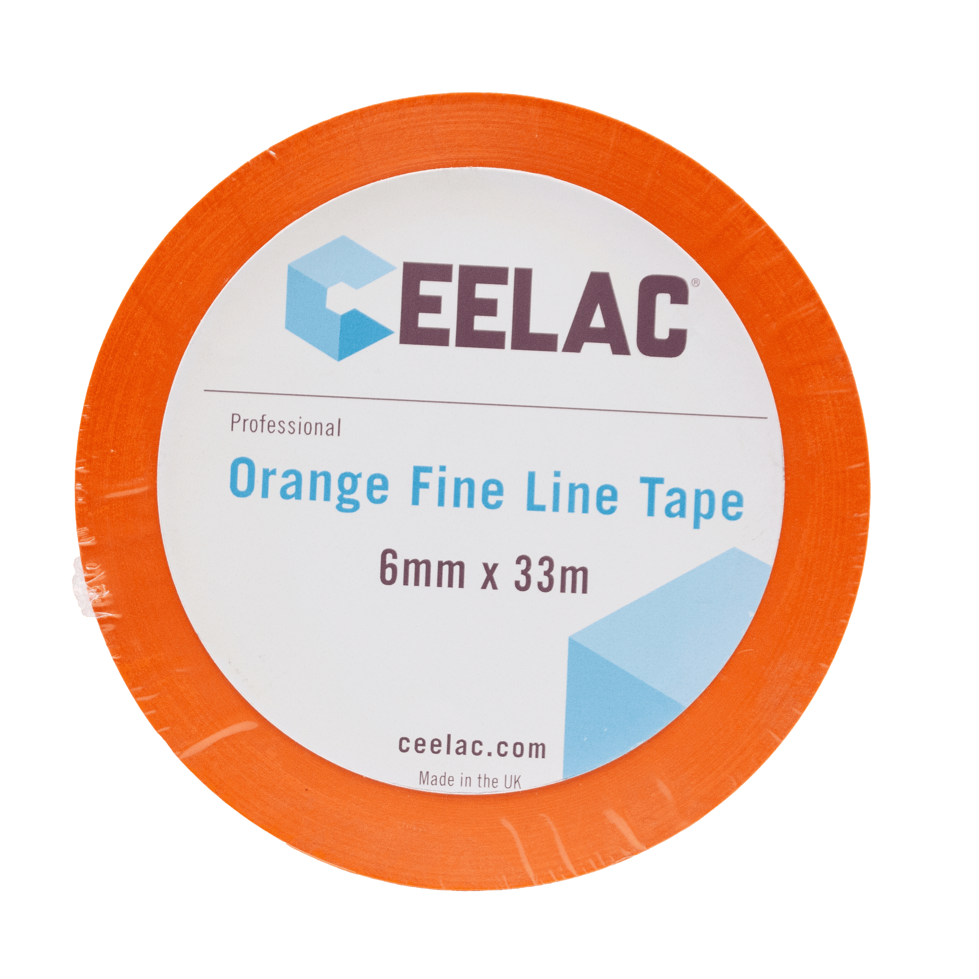 Ceelac Orange Fine Line Tape, uniquely crafted to be thinner and more translucent than traditional fine tapes. This innovative feature enables clear visibility to the painted surface, ensuring accurate alignment and seamless results. Perfect for intricate designs and delicate detailing,