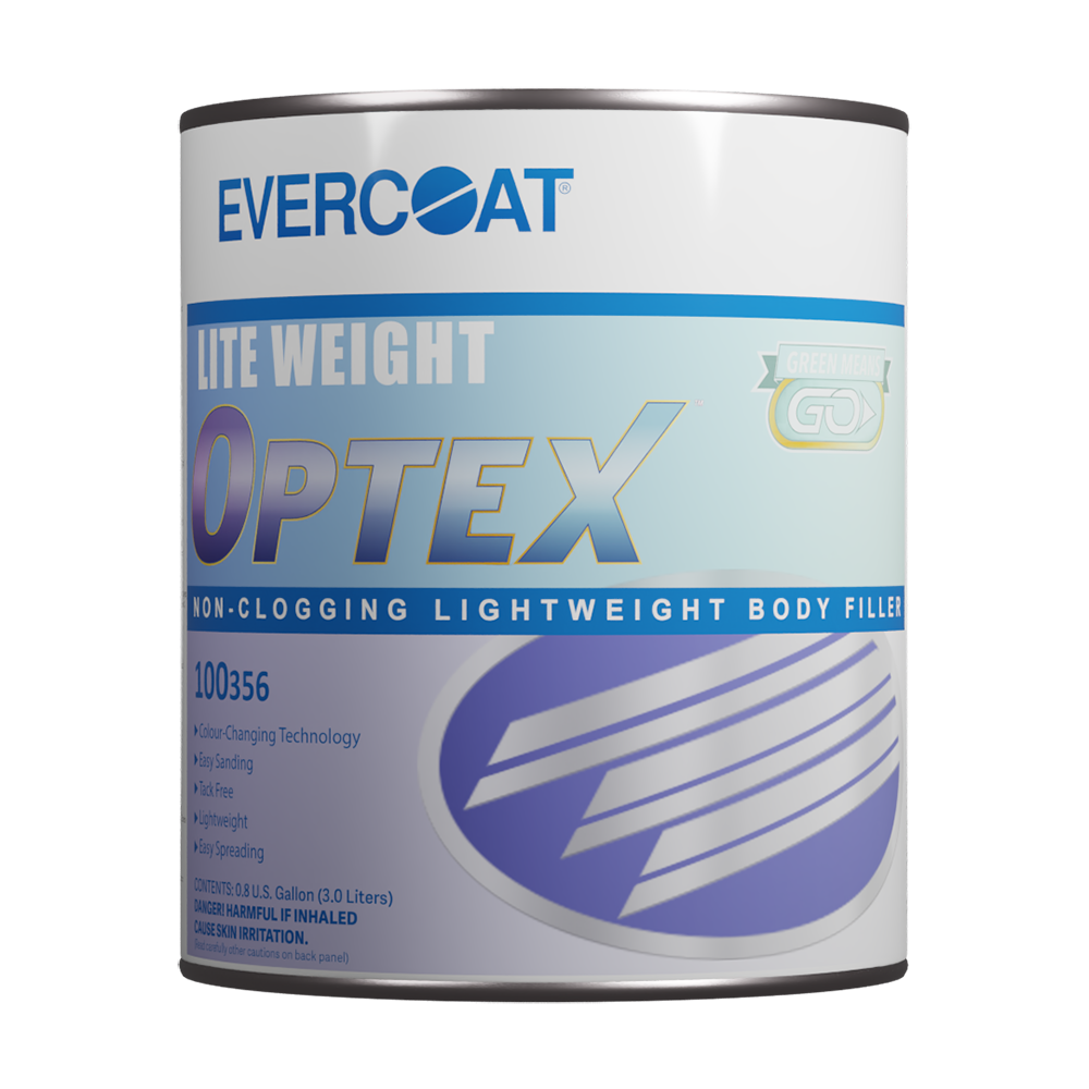 Experience the innovation of LITE WEIGHT® OPTEX® body filler – a superior, clog-free formula with revolutionary OPTEX Color-Changing Technology. This high-quality filler spreads smoothly and effortlessly. Once mixed with cream hardener, it transforms from pink to green, providing a clear signal for sanding readiness. Say goodbye to guesswork and achieve flawless repairs with LITE WEIGHT® OPTEX® body filler.